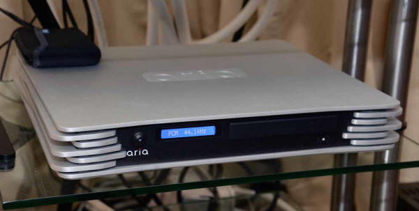 The Acoustic Signature Thunder turntable, the Funk FX-R 12 inch tonearm, and vdH Colibri XGP cart Analog playback was handled with an Acoustic Signature Thunder 'table ($5200), a Funk FX-R 12 inch tonearm ($3000), fitted with the van den Hul Colibri XGP cart ($7800). Digital playback came from either the Lumin Music server ($7,200) or the remarkable Aria Music Server with Wolfson DAC ($5000-$7500, depending on configuration—HDD, SDD, DACs, power supply). More detailed info about the Aria Music Server is available about an hour and 54 minutes into this Enjoy The Music.TV AXPONA video.